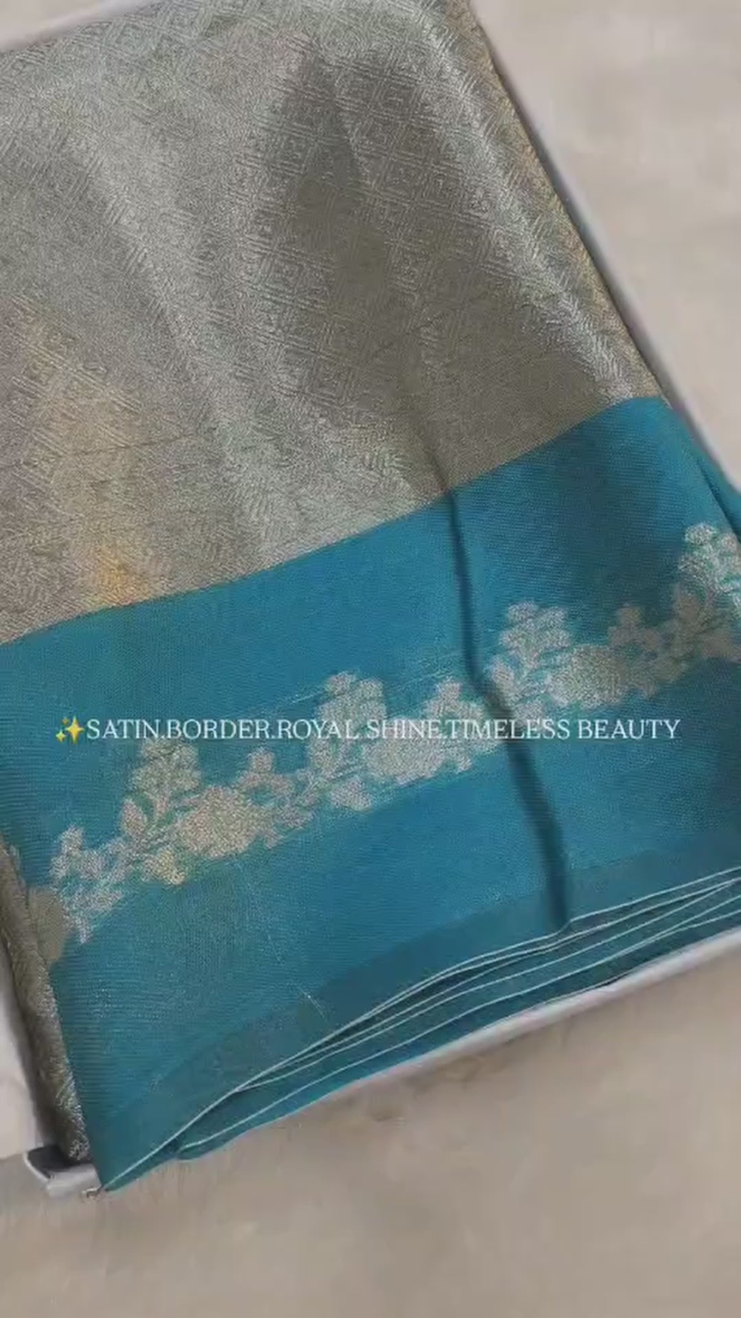 This full brocade saree features pure zari work that radiates sophistication, while the Katan silk border adds a touch of grandeur. Each thread tells a story of heritage and craftsmanship that defines Banaras centuries-old weaving legacy.