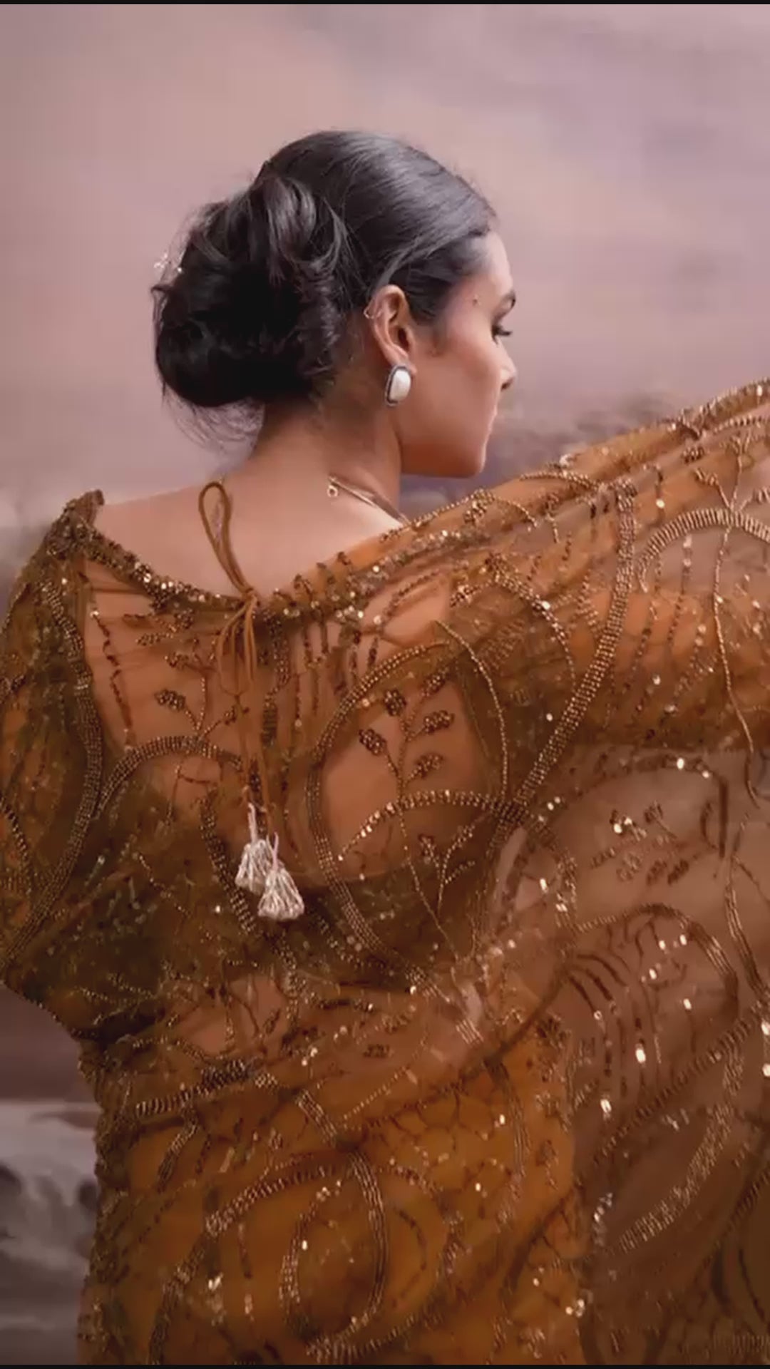 Elevate your elegance with this exquisite net saree, crafted with intricate handwork across the entire saree. Designed for a graceful and refined look, this piece reflects fine craftsmanship and timeless style. The saree comes with a matching blouse, making it a complete ensemble for weddings, receptions, festive occasions, and special celebrations.