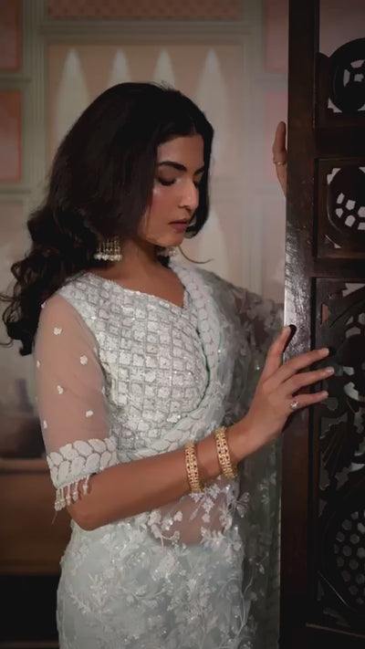 Each drape reveals intricate embroidery woven on the softest organza, creating an ethereal presence.